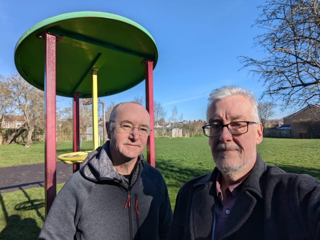 Pictured below, town councillors Martin Burton and Dave Biddleston at the Park Road play area